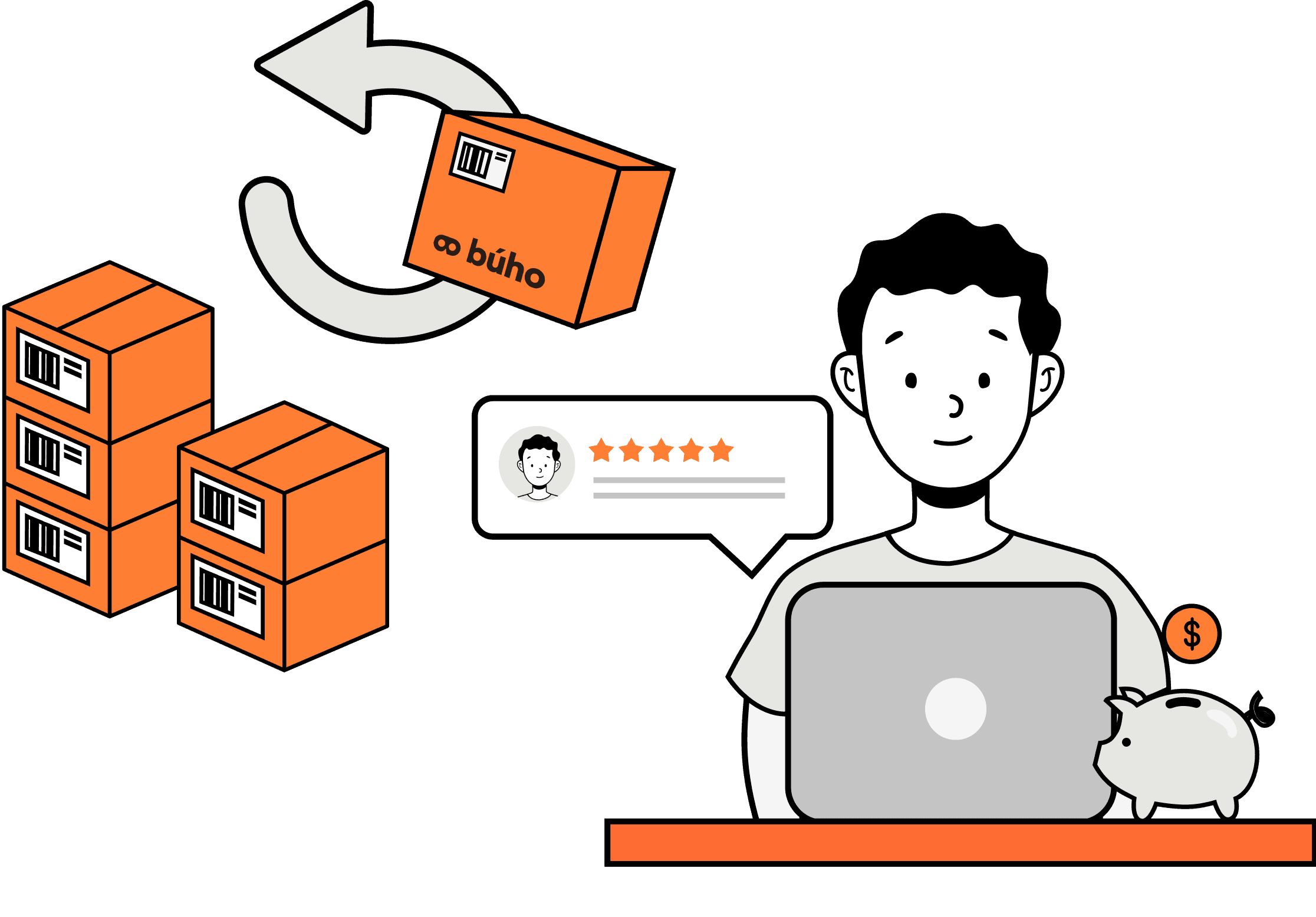 Con Búho como tu socio comercial, te aseguramos que tus pedidos siempre salgan en tiempo y forma. Creemos en transparencia e integridad, así que tu solamente pagarás por los servicios que utilizas. Es decir, si solamente envías 1 producto este mes, solamente pagarás por el servicio logístico de ese producto.